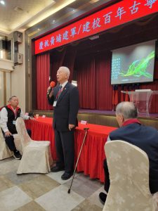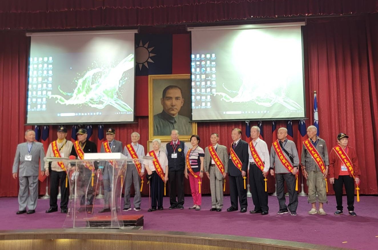 理事長江銘致詞,感謝當年參與古寧頭與登步島戰役兩場戰役獲得大捷的英雄們,特頒錦旗給當年抗戰英雄。包含,民國33年3月3日抗戰反攻緬甸瓦魯班大捷戰鬥英雄:李戎篤;民國38年10月下旬金門古寧頭大捷戰鬥英雄:尹恪易、戴正華、胡正青、羅志才;38年11月初舟山登步島大捷戰鬥英雄:傅偉志、李王淑慧、楊雨畊、周伯乃、曾玉琪、冉正林、方邦修、吳綿廷、汪寬文、周勝坤、吳范玉蘭、李秀新、涂林蘭。