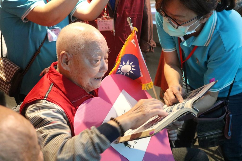 許多榮民前輩們看到自己昔日軍校生英姿照片樂開懷。