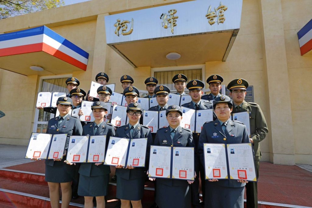 授證暨授階典禮中,首先由余校長先後為17位學員頒發結業證書及授予少尉階級,並勉勵大家必須肩負部隊領導統御和管理實務的工作,以身作則恪遵軍紀法令要求。