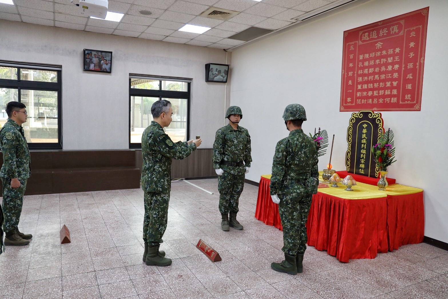 陸軍官校除夕祭祖2024-02-09 陸軍官校新聞官 張原愷 為承襲慎終追遠的優良中華文化,陸軍官校校長余劍鋒將軍於今(9)日主持春節祭祖儀式,率領留守官兵一同參與,共同緬懷先賢先烈犧牲奉獻精神,場面莊嚴隆重。 除夕,除了是國人團圓及共享天倫之樂的日子,身為革命軍人的我們,更不能忘懷國家先賢先烈過去的奮鬥,讓國人同胞安居樂業。余校長期許全體同仁都能牢記飲水思源的道理及身為軍人的榮耀與使命,在新的一年,繼續為國人戍衛鄉土。 上一 文章 學指部大家庭 春節活動熱鬧溫馨 下一 文章 陸官學生參加「平野科學祭」 展現自我