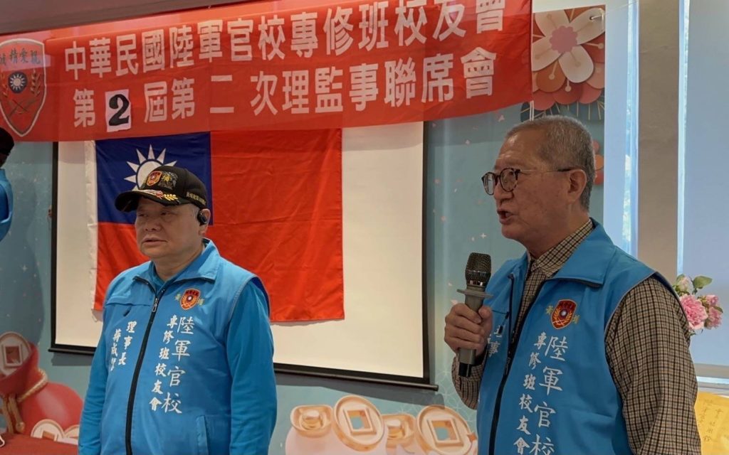 陸軍官校專修班校友會第二屆第二次理監事聯席會議,今(4)日假立法院康園餐廳舉行,由理事長蔣成龍主持,計有中央軍事院校校友總會前理事長季麟連上將、名譽理事長專修1期陳子渭學長,榮譽理事長專修9期謝抗建中將出席指導,更有遠從金門趕來的金門縣前議長王水彰學長,以及遠自花蓮、屏東校友,全台各地校友一百廿餘人踴躍參加。