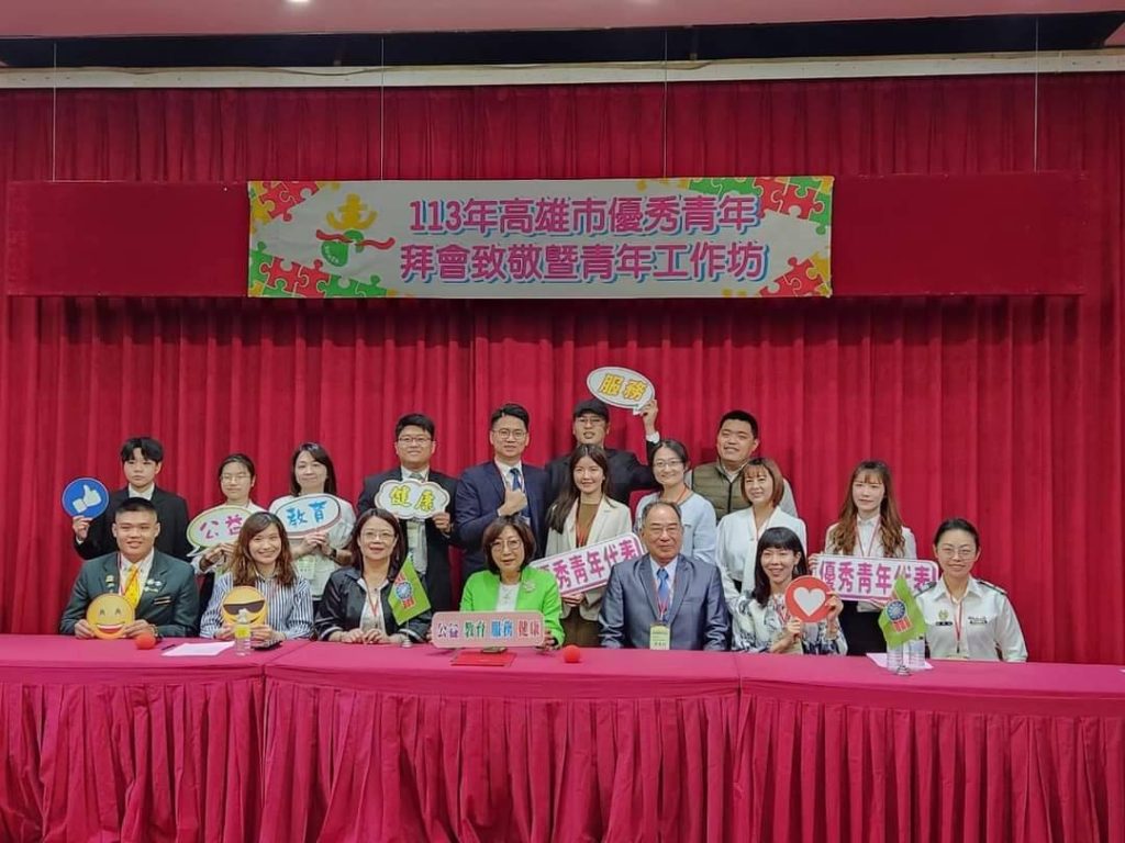 今(29)日是青年節,陸軍官校正93期土木系學生詹綵芃以年輕人的熱血和活力,參與全球人權行動,聲援人們表達意見自由,維護公理正義;本著﹁老吾老以及人之老,幼吾幼以及人之幼﹂的情懷,假日熱心積極參與志工相關活動,關懷照顧病困和行動不便老人長輩,以及早期療育發展幼童,讓他們時刻感受到愛與活力,誠為優秀青年典範,當選113年高雄市優秀青年,青年節前夕,前往蓮潭會館參加「113年高雄市各界慶祝青年節優秀青年表揚大會」接受表揚。