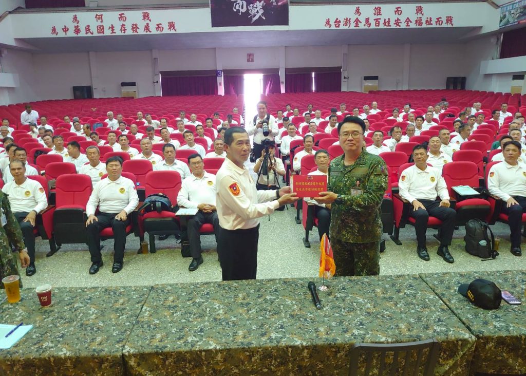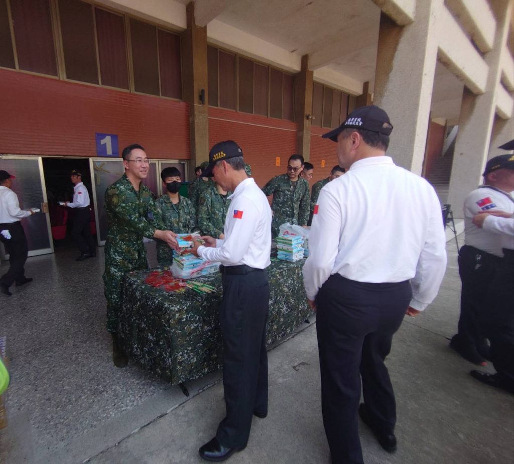陸軍司令部人軍處處長林志穎少將代表國防部及司令部致贈所有隊員禮物,慰勉大家操練辛勞。