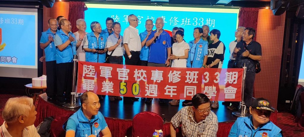 4月20日欣逢陸軍官校專修班33期畢業50週年慶日,該期同學二百餘人假台中市女兒紅婚宴會館舉行同學聯誼餐會;除了該期同學、眷屬外,尚有專修36期、國防管理學院校友會、陸戰隊袍澤戰友共襄盛舉,席開20桌會場氣氛融洽歡樂,畢業50年的同學會,大夥都非常珍惜,餐會時自動的以50年前的連上同學聚在一起話家常。