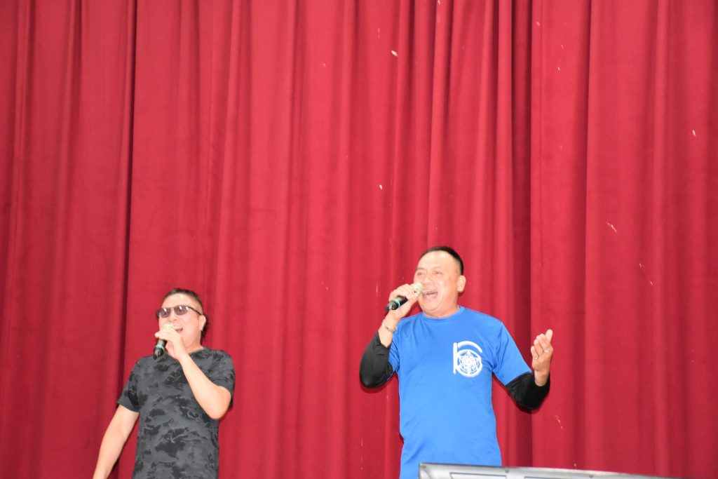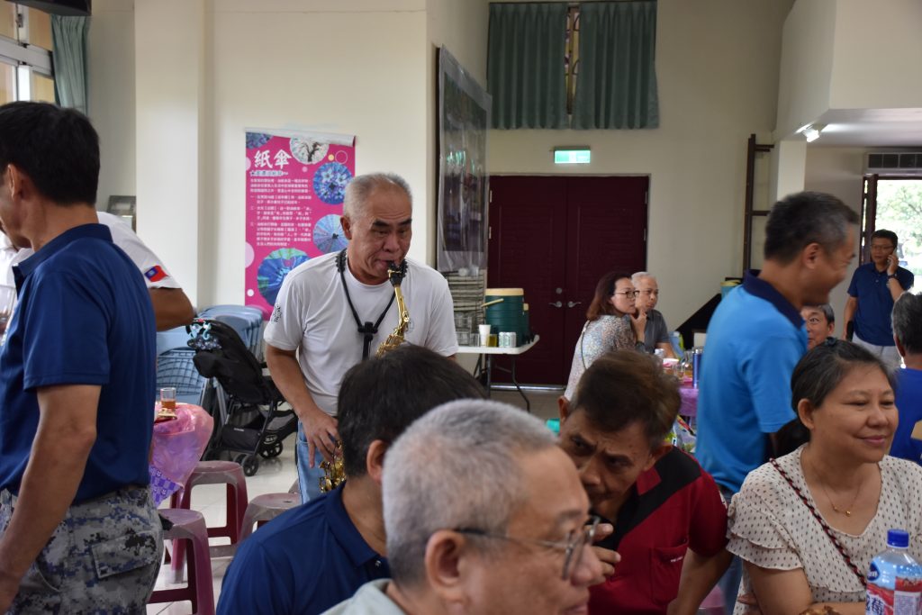 多位專科校友上台唱本土、西洋歌曲,美聲渾厚輕快,炒熱氣氛,校友和眷屬們紛紛報以熱烈掌聲;薩克斯風好手專科9期楊光華學長穿梭會場獻藝,也博得滿堂彩。