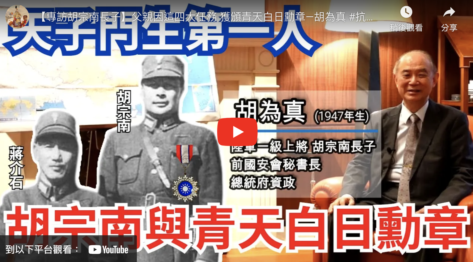 【專訪胡宗南長子】父親因這四大任務 獲頒青天白日勳章—胡為真2024-06-05 上一 文章 陸軍官校太美了!鮮少開放的神秘校園:黃埔湖、黃埔賓館、校史館、中正堂 下一 文章 中華民國當年「反共、反毛」的忠勇戰將 -- 王仲廉將軍