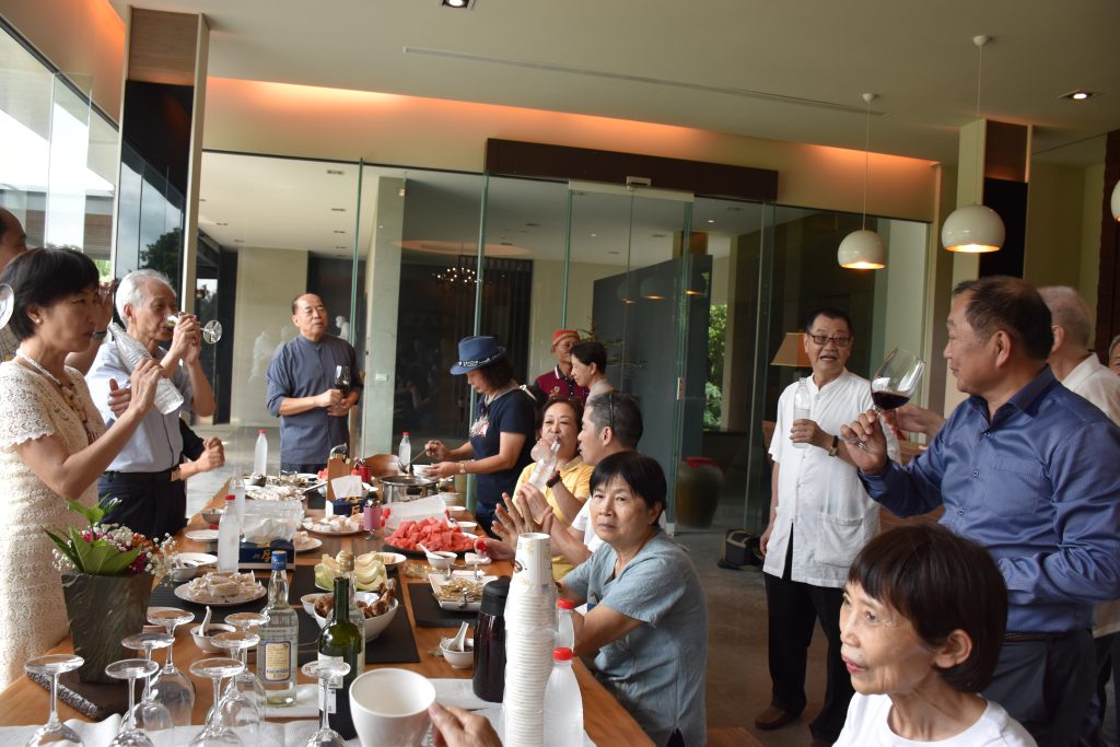 校友基金會一行參加黃埔建校一百週年校慶活動告一段落之後,坐遊覽車轉赴郭亨政顧問的「愛政園」農莊庭園參觀。在莊園內,大家一面享美食,一面話黃埔、話家常,歡聲笑語不斷,共度一個輕鬆愉悅的下午。