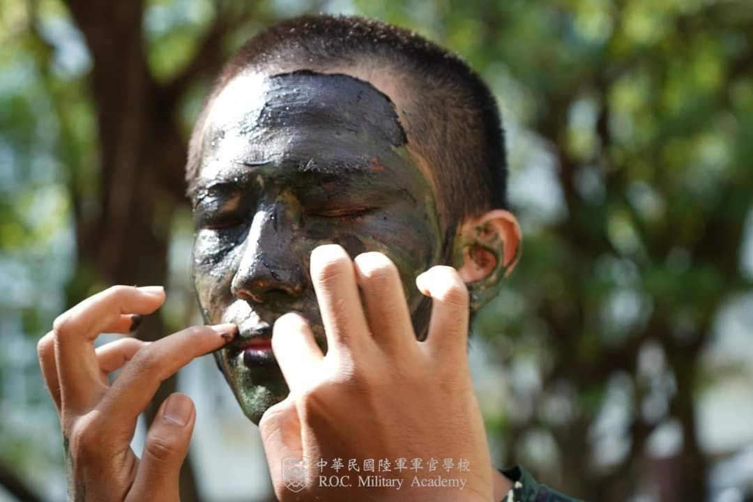 為強化單兵作戰能力,入伍生在教育班長引導下運用木炭粉、草木灰等材料,塗抹於皮膚裸露處,並運用現場可採集的植物進行偽裝,利用草叢、樹叢等現地,進行隱蔽與掩蔽,並藉此達到欺敵效果。 授課教官表示,雖有現成的偽裝塗料加以運用,仍須學習在野外利用枯枝、落葉及雜草等燃燒後灰燼製作偽裝塗料,改變臉部顏色,避免光線的反射,才能在戰場中爭取最大生存空間。