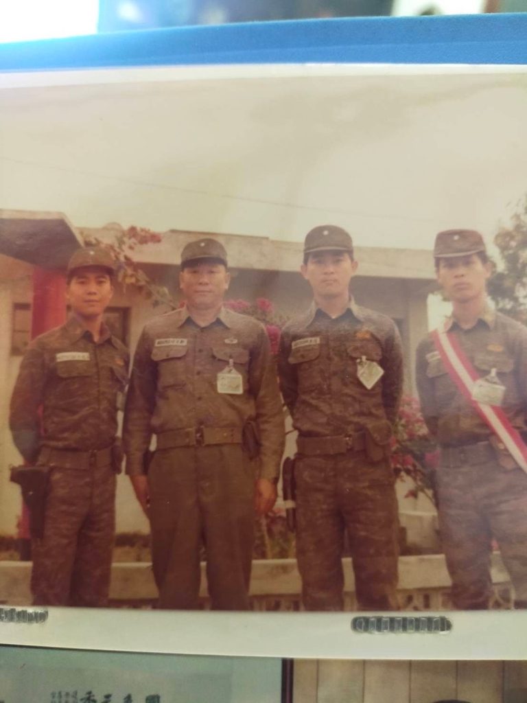 我們是一群為了蔣公64年逝世,社會發起「墨絰從戎」運動,我等響應應屆高中畢業生與社會青年報考軍校,就這樣子我走上了職業軍人的這條路,經過了入伍教育、軍官養成教育、兵科專長教育,我分發到了傘兵部隊獨立空降21旅炮兵營,開始了多采多姿的軍旅生涯,在服役期間因為助民收割而認識了我的另一半,並於69年底結婚育有二子,70年上尉連長退伍。