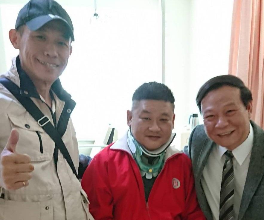 李興國學長(右)擔任專修51期同學會會長與秘書長王在勇同學(左)赴院探望俞家麟同學。