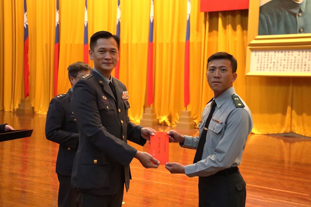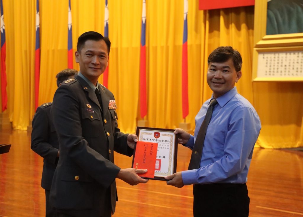 接續由教育長為晉任人員實施授階及頒發優良教師、推展校務有功、本校楷模暨模範團體及入學成績優異等獎項,並勉勵軍職人員與老師及同學們,在平時為學校所做的努力與付出。