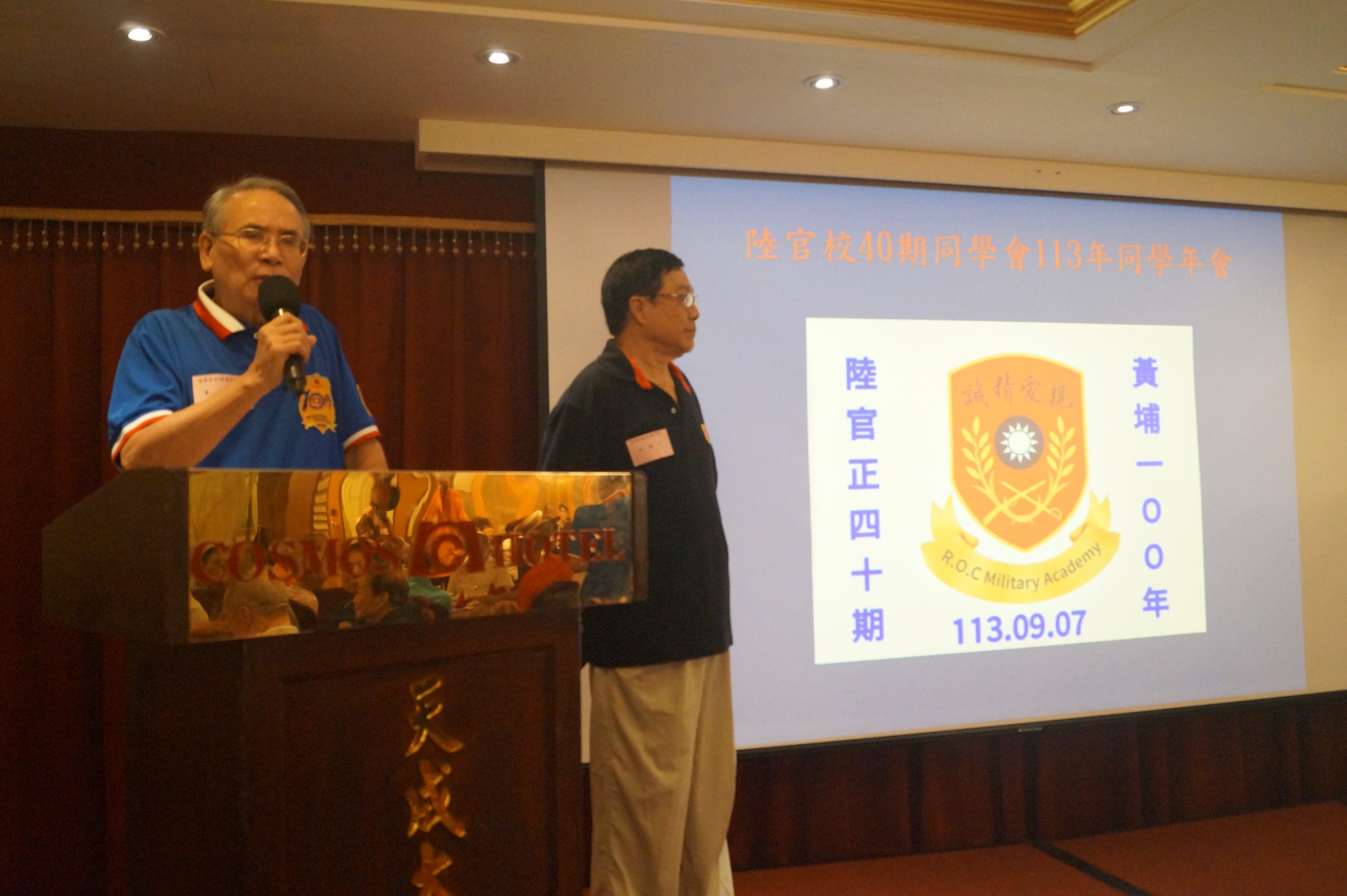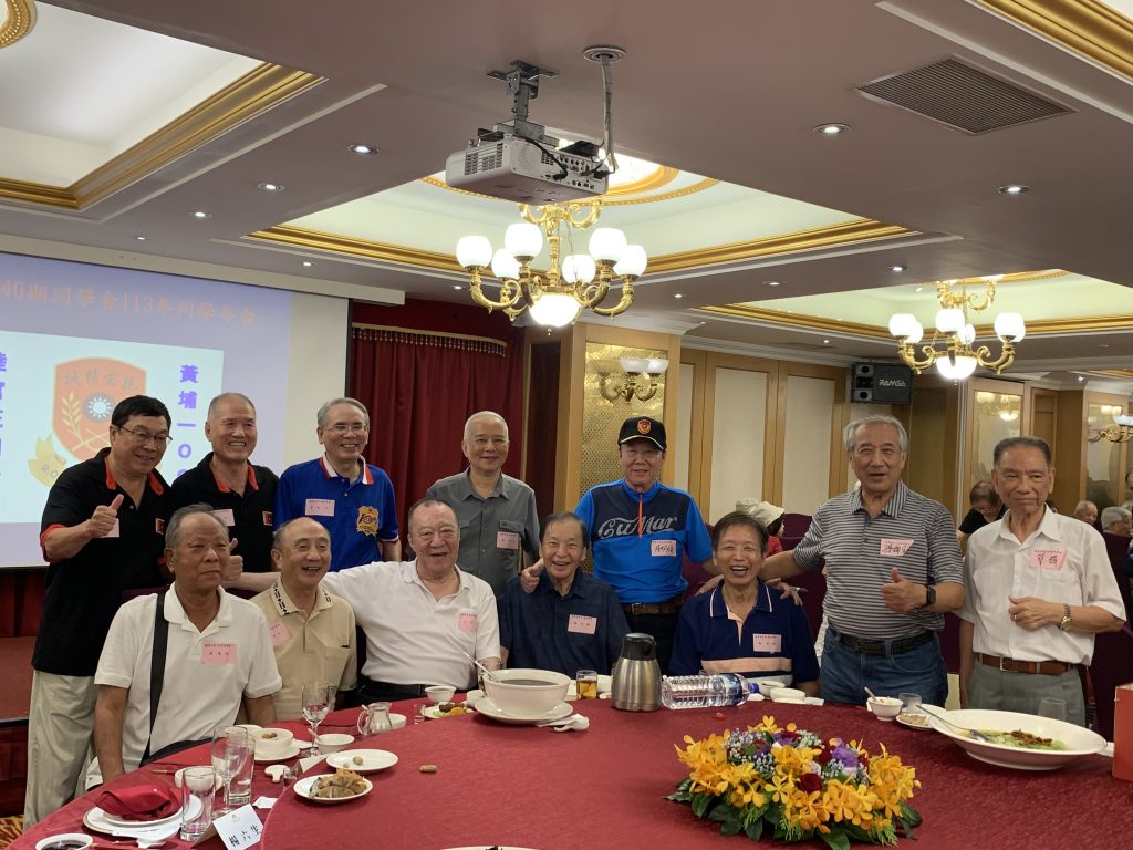 陸官校正40 期同學會,為慶祝黃埔建軍建校百週年慶及召開113年年會,於本(113)年9 月7 日中午舉行聯誼餐會,計開席20桌,共2 百餘位同學及眷屬歡欣鼓舞地齊聚台北市天成飯店,見證此深具意義的歷史時刻;而破紀錄的出席率(原訂桌16桌,因出席同學踴躍,不斷加桌至20桌)也印證了同學會成員對黃埔精神的傳承及發揚予以高度的肯定,本次年會前國防部趙副部長、前陸軍總部龐副總司令、國防部前採購局長、史編局長及國安會、國安局、海巡署等單位重要軍職人員及20餘位陸軍少將級同學均親臨參與,更顯出同學親愛精誠的兄弟情。