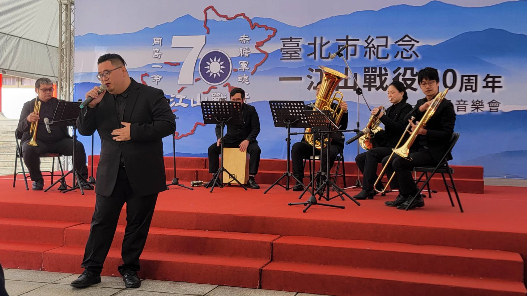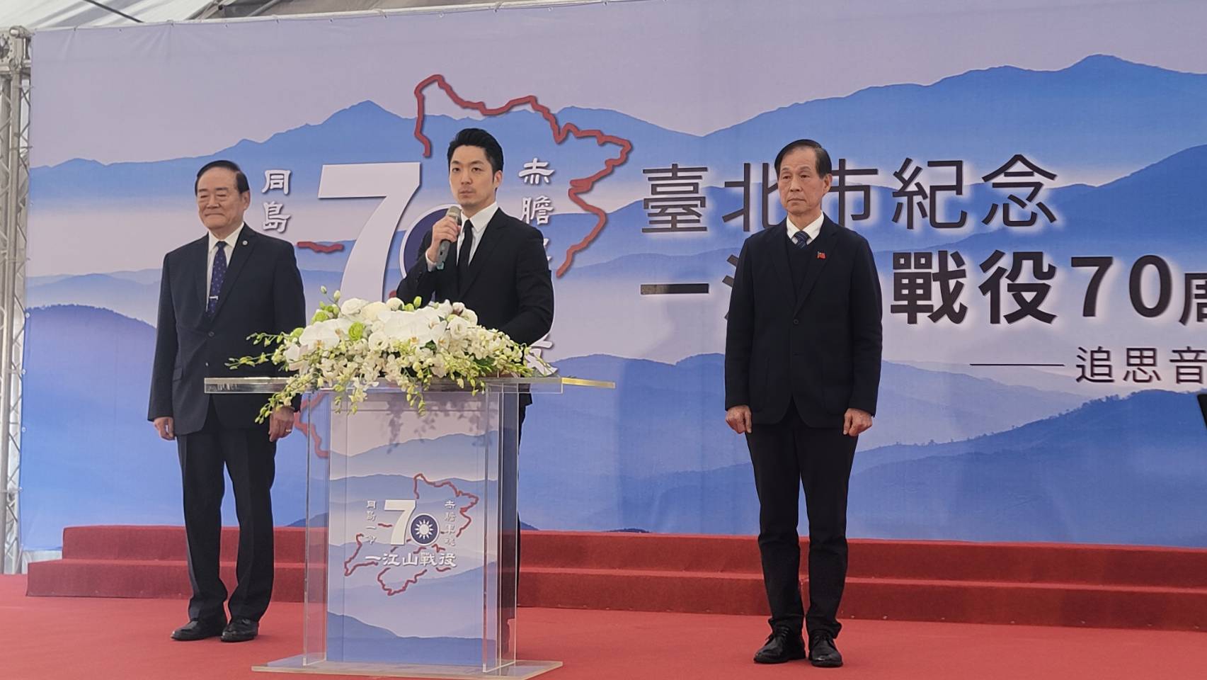今天由台北市政府主辦的“一江山戰役70週年紀念音樂會”,在南港國軍公墓台北市忠烈祠舉行,由市長蔣萬安親自主持,邀請了烈士遺族、市議員、一江山戰役協會理事長葛光越大使、前國安會秘書長胡為真大使、中央軍校校友總會理事長彭進明上將、陸軍官校校友總會總會長羅際琴中將、八二三戰役協會理事長黃奕炳中將、八百壯士協會理事長王忠義將軍、榮光籃球協會理事長李宗藩將軍,以及後憲單位、國防部政治作戰局、北區後備指揮部、北市府局處長等共同參與。