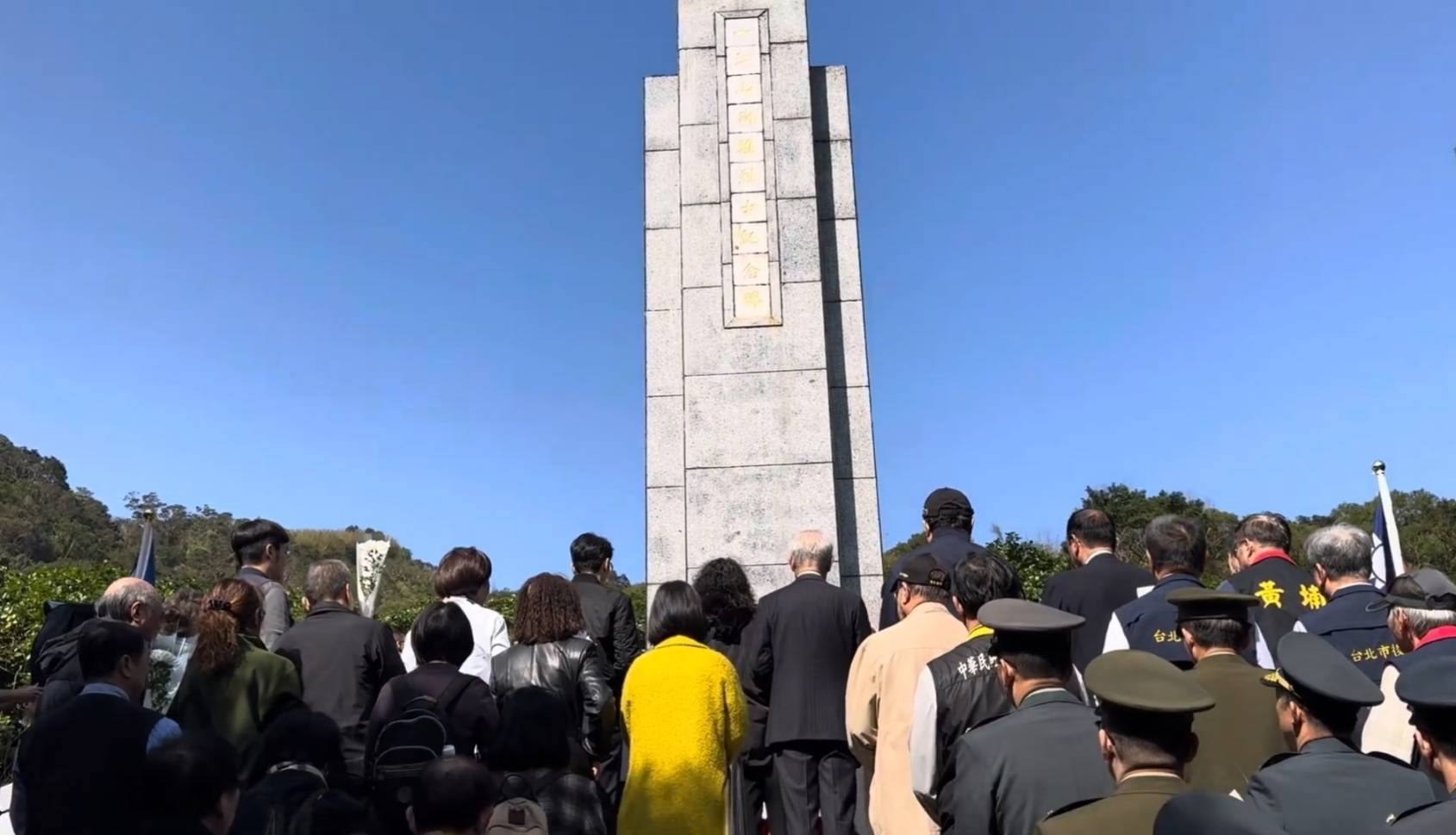 全體來賓在蔣市長率領下,於一江山烈士陣亡紀念碑默哀、獻花。