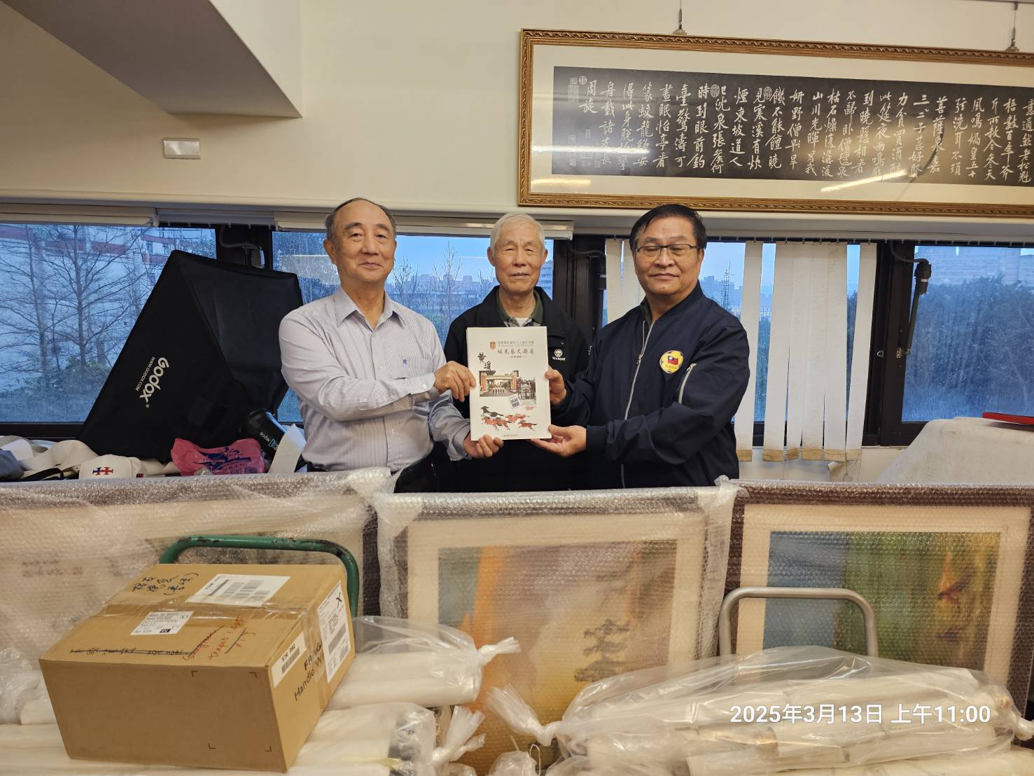 3月13日上午9點40分,在榮譽總會長甯攸武中將監交下,由前總會長胡筑生,率原工作小組劉忠桓將軍、王秋香小姐及高整軍學長,當場點交所有展品及‘’陸軍軍官學校九十週年校慶埔光藝文聯展紀念專輯‘’,予現任總會長羅際琴及財務長李葉發學長。約11時,清點完畢後,簽署交接清冊、與交接的展品合照、羅總會長特別致贈感謝狀,給無償典藏的躍群藝術公司黃董事長,圓滿完成交接儀式。