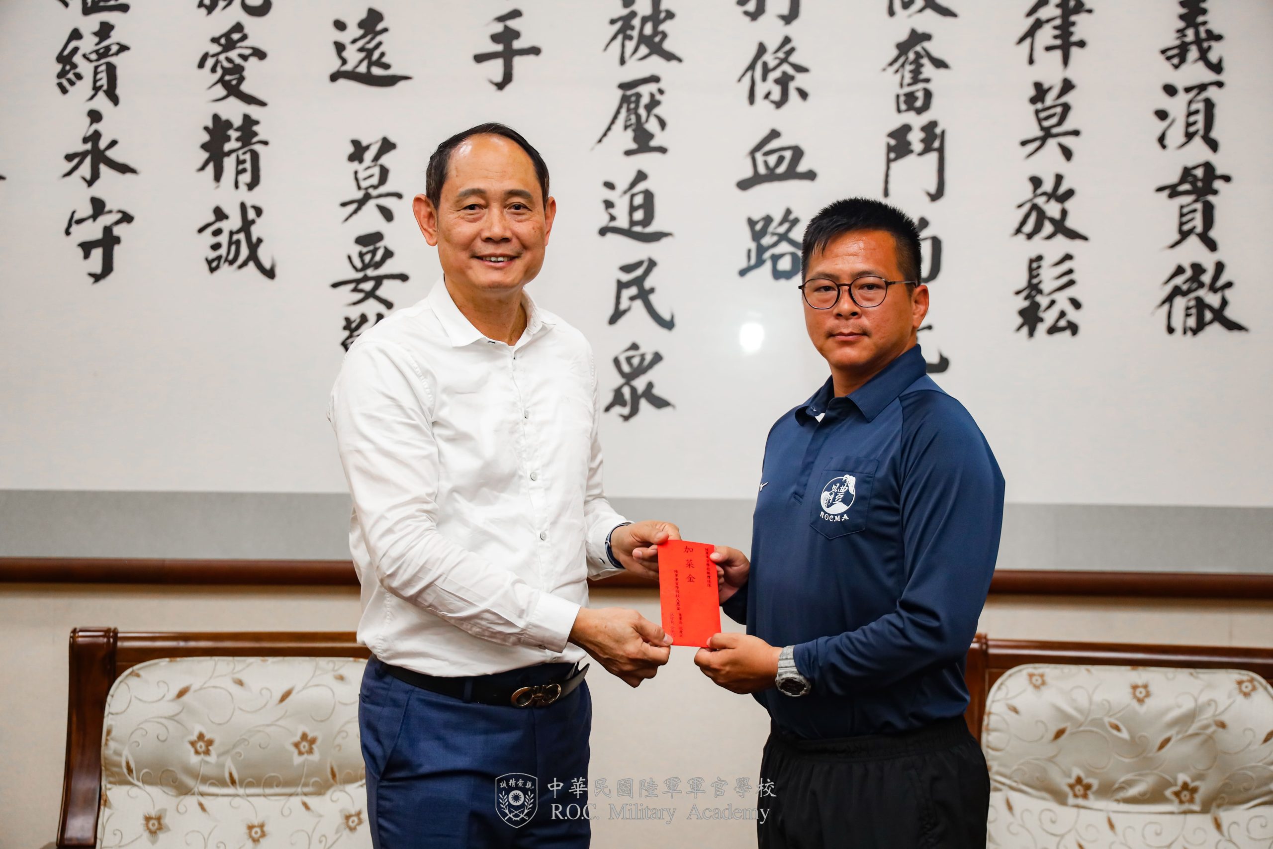 民國114年4月9日,基金會執行長全子瑞代表董事長及全體成員,親赴陸軍官校,將3萬元加菜金送至橄欖球隊,為球員們辛勤訓練的努力給予鼓勵與支持。這不僅是一份物質上的慰勉,更展現了學長對學弟們深厚的關懷與體貼,猶如家人般互相照顧,讓球員們在備戰期間感受到溫暖的力量。