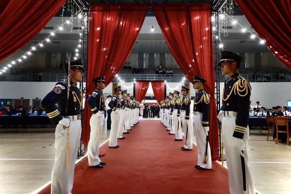 昨(2)日陸軍官校舉辦「鳳舞流宴」校際交流舞會,由校長譚芳榮少將為95期學生舉行期戒授予儀式揭開舞會序幕,象徵責任的傳承與榮耀的起點。